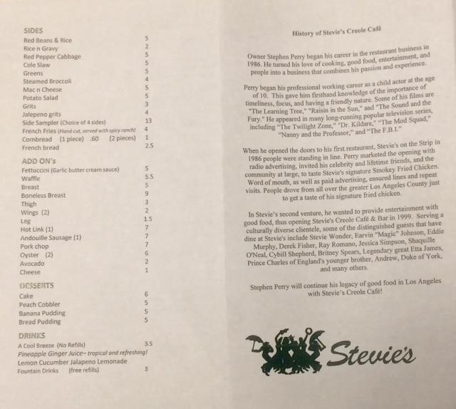 A few months ago I noticed that the former Chic Cafe on Pico Boulevard (around the corner from our house) had some new construction goin' on. I saw a big neon sign and banners for Stevie's Creole Cafe! Yippee! I could almost taste that savory gumbo.