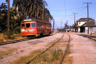 The Palms Depot building is where a self-storage facility is today, near Vinton Avenue and National Blvd. in Palms. This particular building was saved and moved to Heritage Square Museum in Highland Park and now serves as their Visitor's Center. Most of those large palm trees were pulled out to make way for the Santa Monica Freeway in 1963.